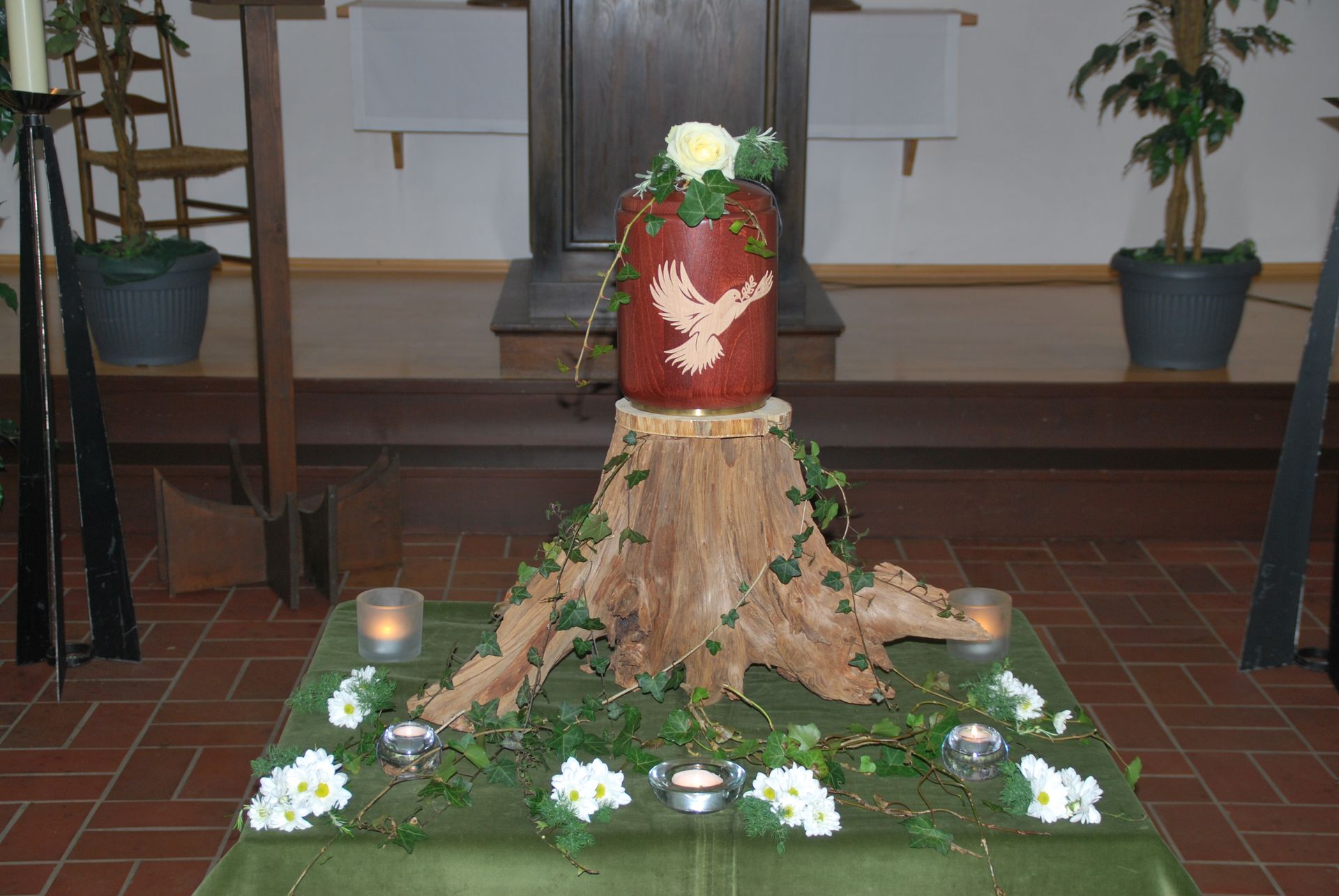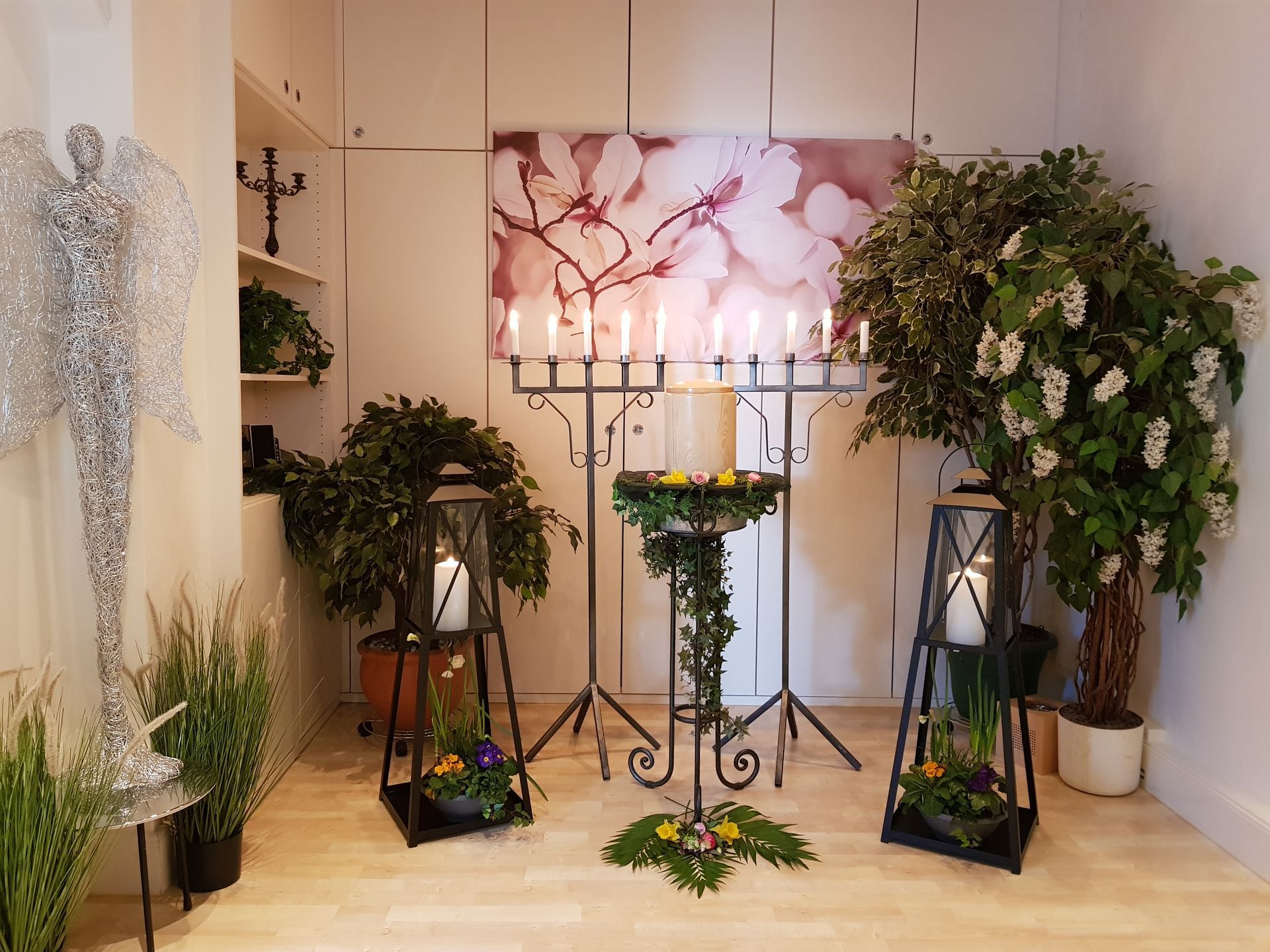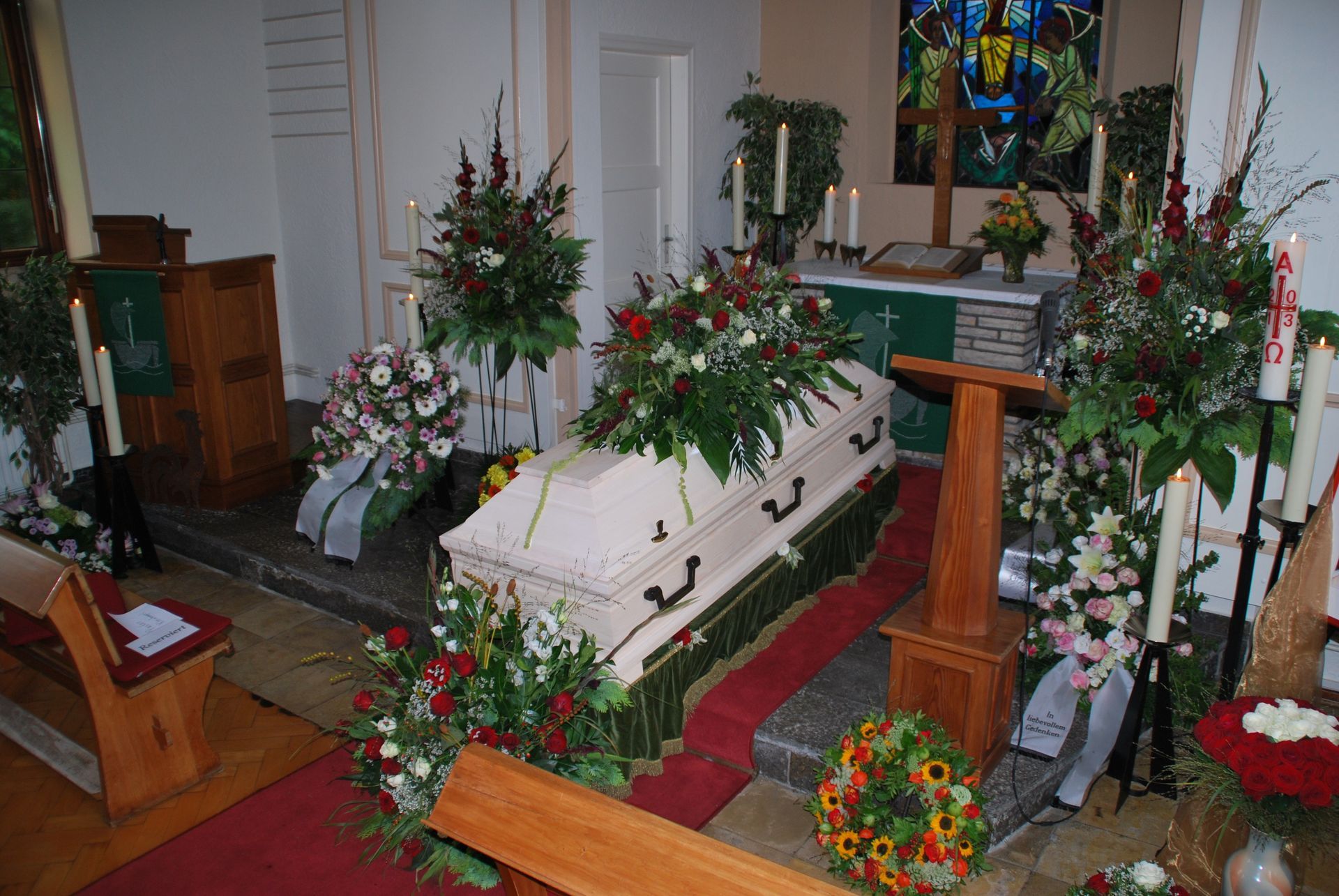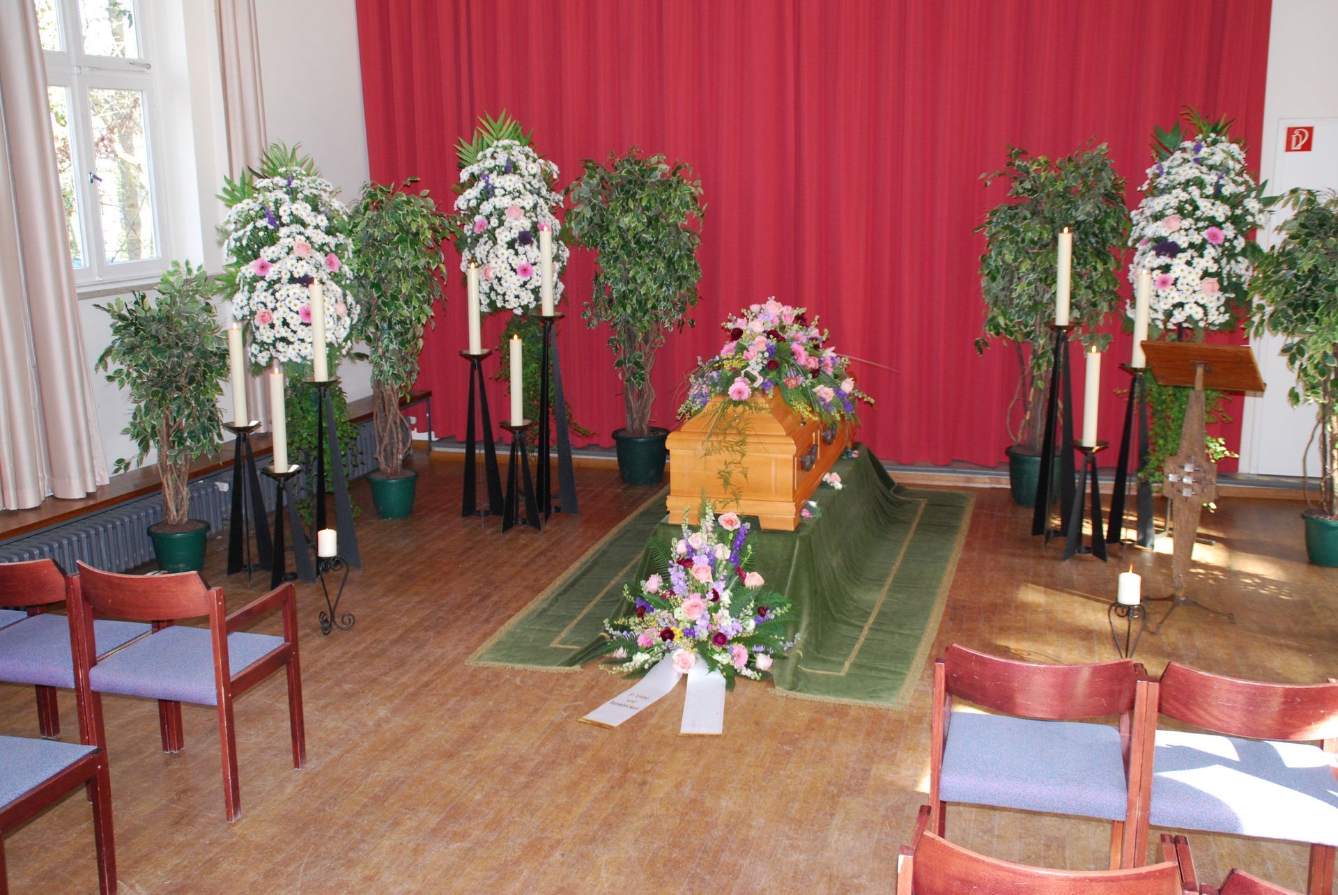 Wir verstehen, dass jeder Abschied einzigartig ist und bieten daher eine vielfältige Auswahl an Dekorationselementen an. Ob zarte Blumenarrangements, stilvolle Kerzenleuchter oder individuelle Erinnerungsstücke – wir ermöglichen es den Hinterbliebenen, den Raum nach ihren persönlichen Vorstellungen zu gestalten.