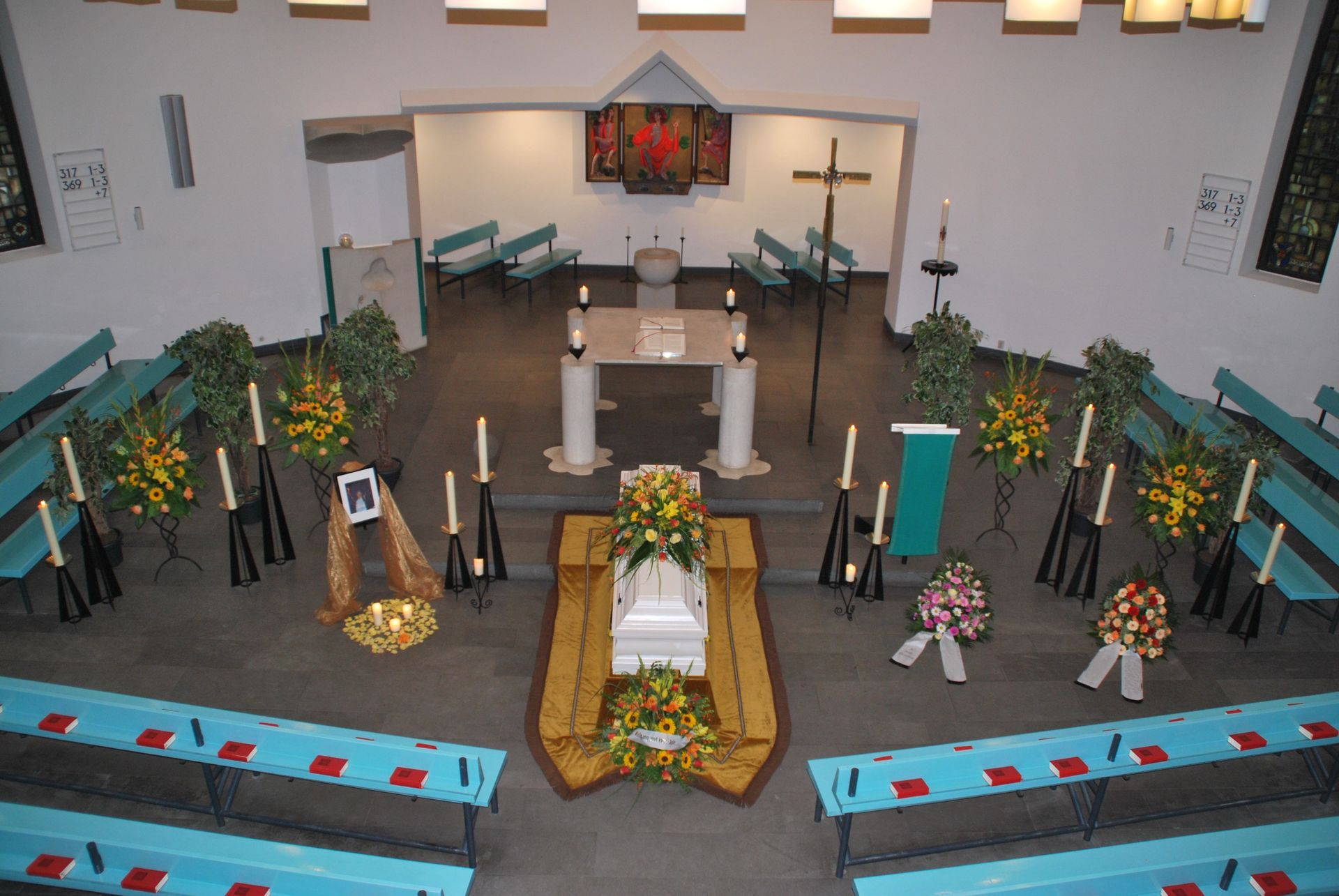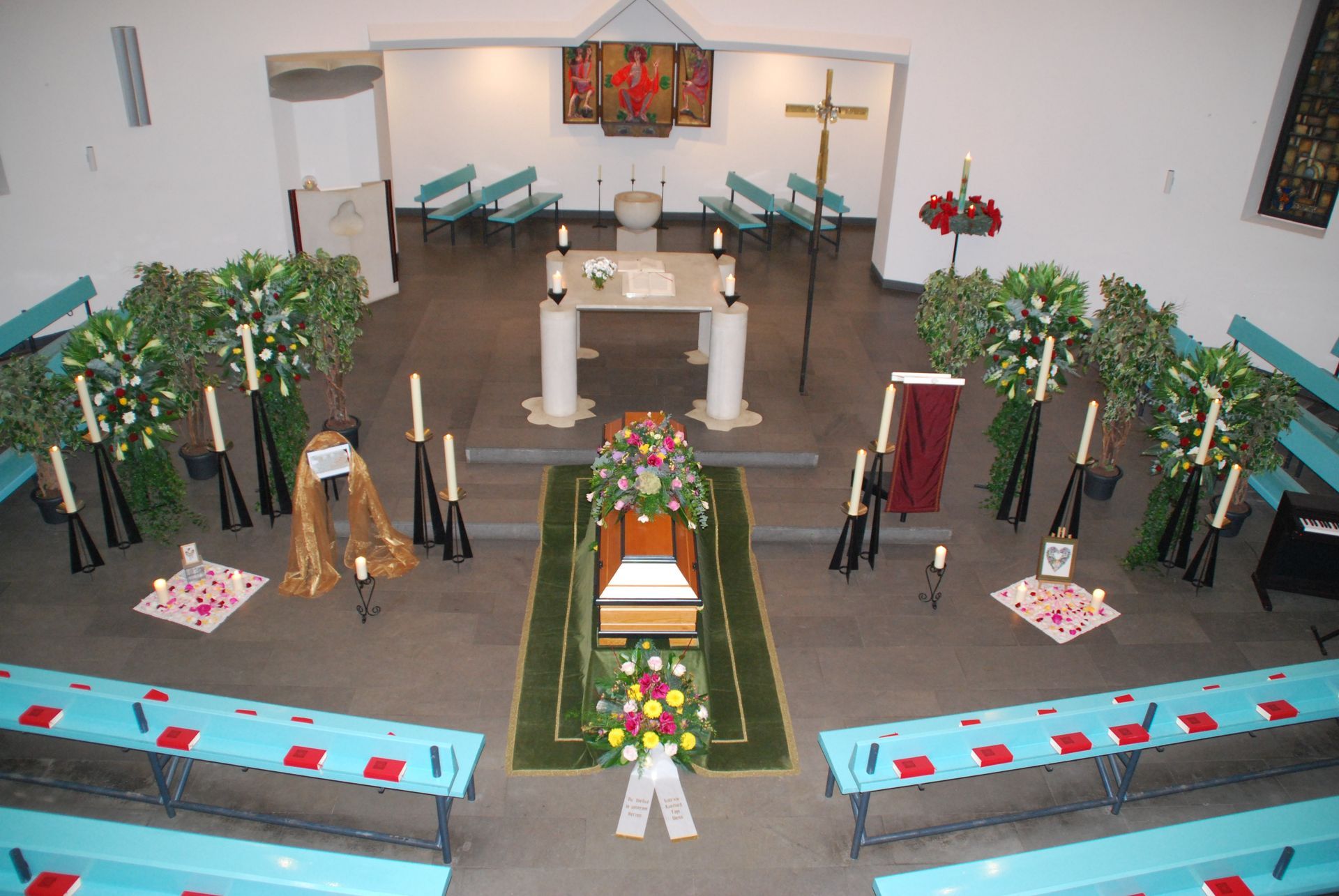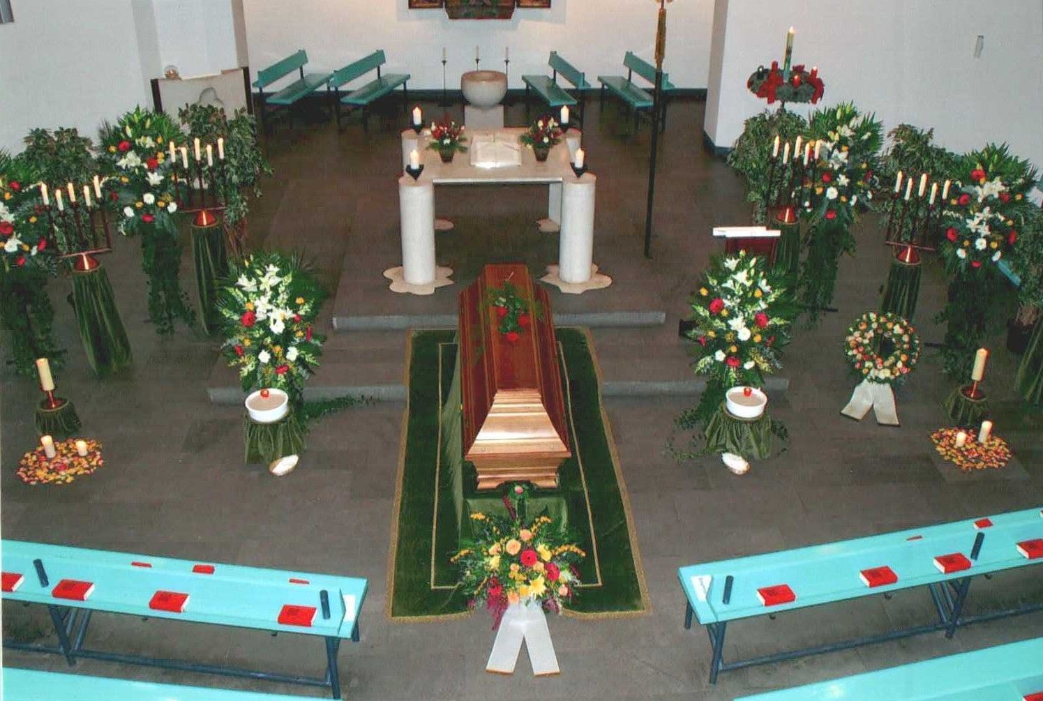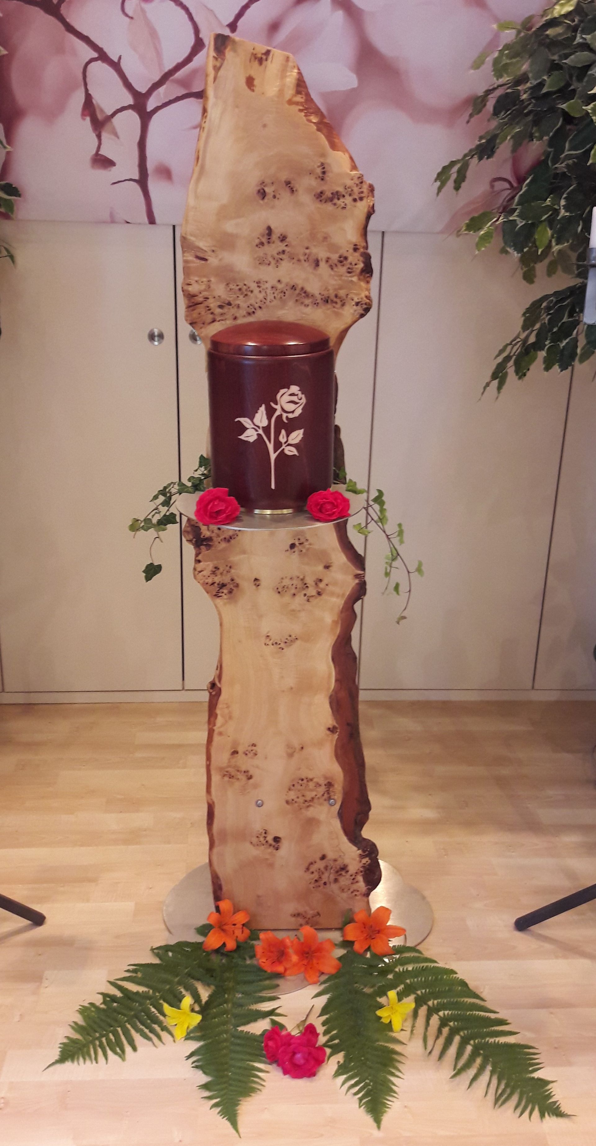 Wir verstehen, dass jeder Abschied einzigartig ist und bieten daher eine vielfältige Auswahl an Dekorationselementen an. Ob zarte Blumenarrangements, stilvolle Kerzenleuchter oder individuelle Erinnerungsstücke – wir ermöglichen es den Hinterbliebenen, den Raum nach ihren persönlichen Vorstellungen zu gestalten.