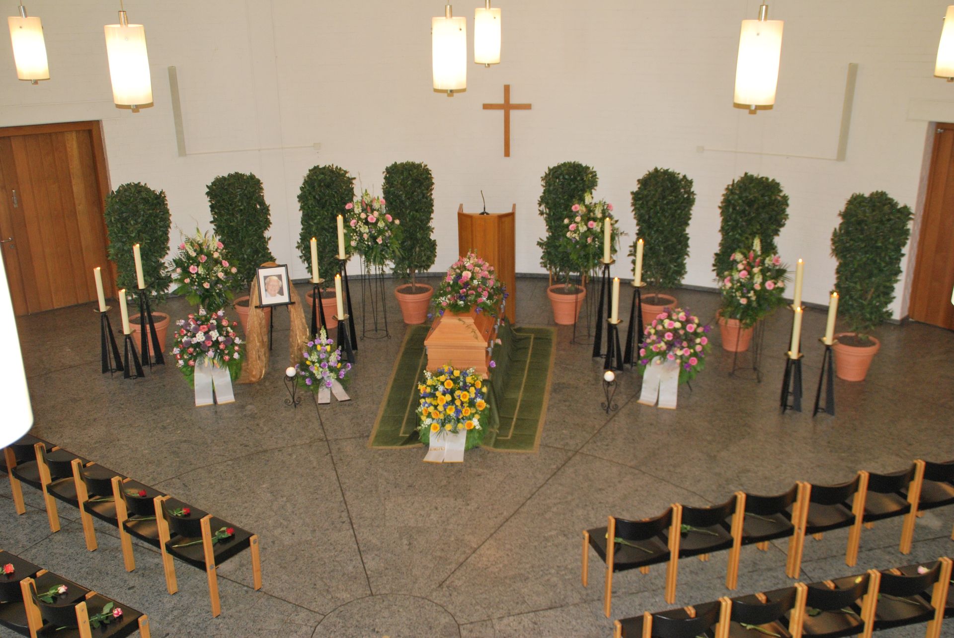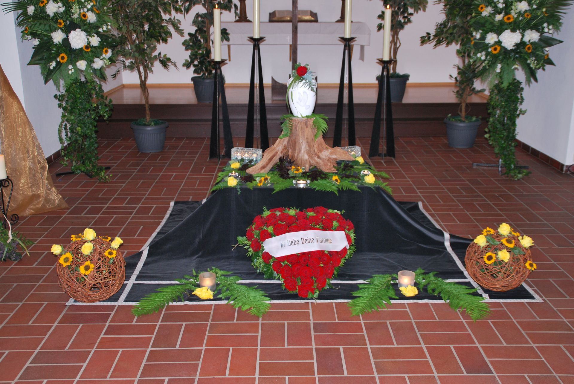 In der schweren Zeit der Trauer ist die Verabschiedungs- oder Trauerfeier und die Beisetzung- selbst der Ort, der Raum für Erinnerung, Liebe, Trost und Würde für den Abschied schafft. Wir verstehen wir die Bedeutung der richtigen Dekoration, um diesem Raum der Trauer eine liebevolle und einzigartige Atmosphäre zu verleihen. Die über Generationen gewachsenen Dekorationen von Bestattungen Richardt & Co tragen dazu bei, Abschiedsfeiern zu persönlichen und bewegenden Momenten der Erinnerung und Würdigung zu machen. Unsere große Palette an Dekorationsmöglichkeiten reicht von schlichter Eleganz bis zu individuellen, persönlichen Akzenten.